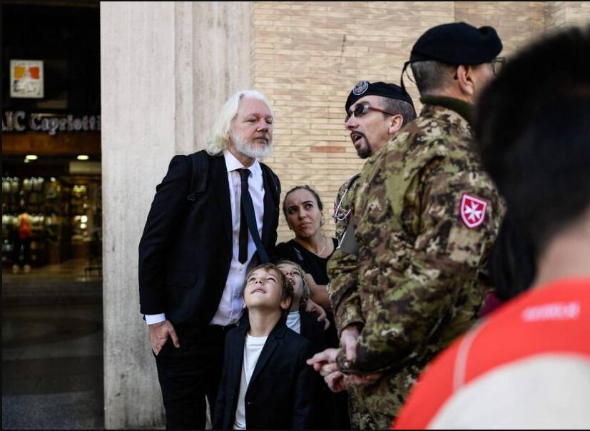Cerca de la Plaza San Pedro estuvo el creador de WikiLeaks, Julian Assange, acompañado de su familia.