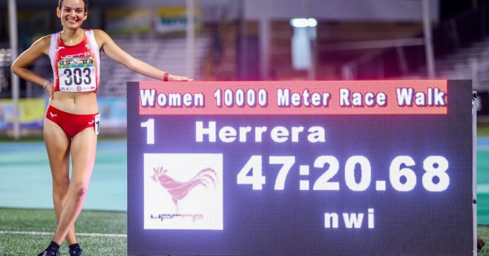La jerezana de la Universidad de Puerto Rico (UPR) de Río Piedras, Sharon Herrera, quebró la marca de los 10,000 metros marcha, en el segundo día de las Justas de Atletismo, y penúltimo día del Festival Deportivo de la Liga Atlética Interuniversitaria (LAI).