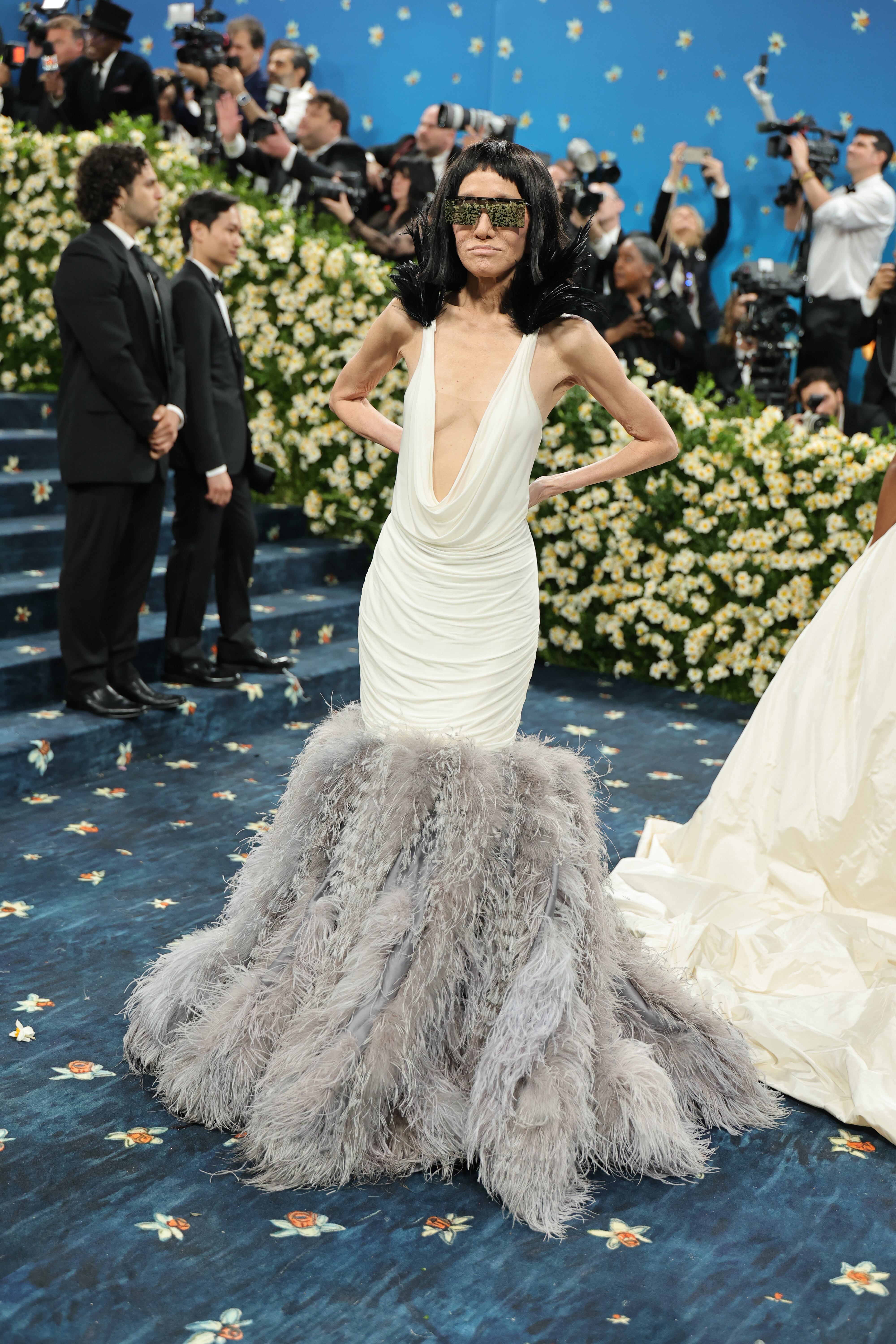 La diseñadora caminó con elegancia por las escaleras del Museo Metropolitano de Arte en Nueva York el lunes 5 de mayo, luciendo un vestido espectacular, gafas oscuras y un peinado que fue una de las mayores sorpresas de la noche.