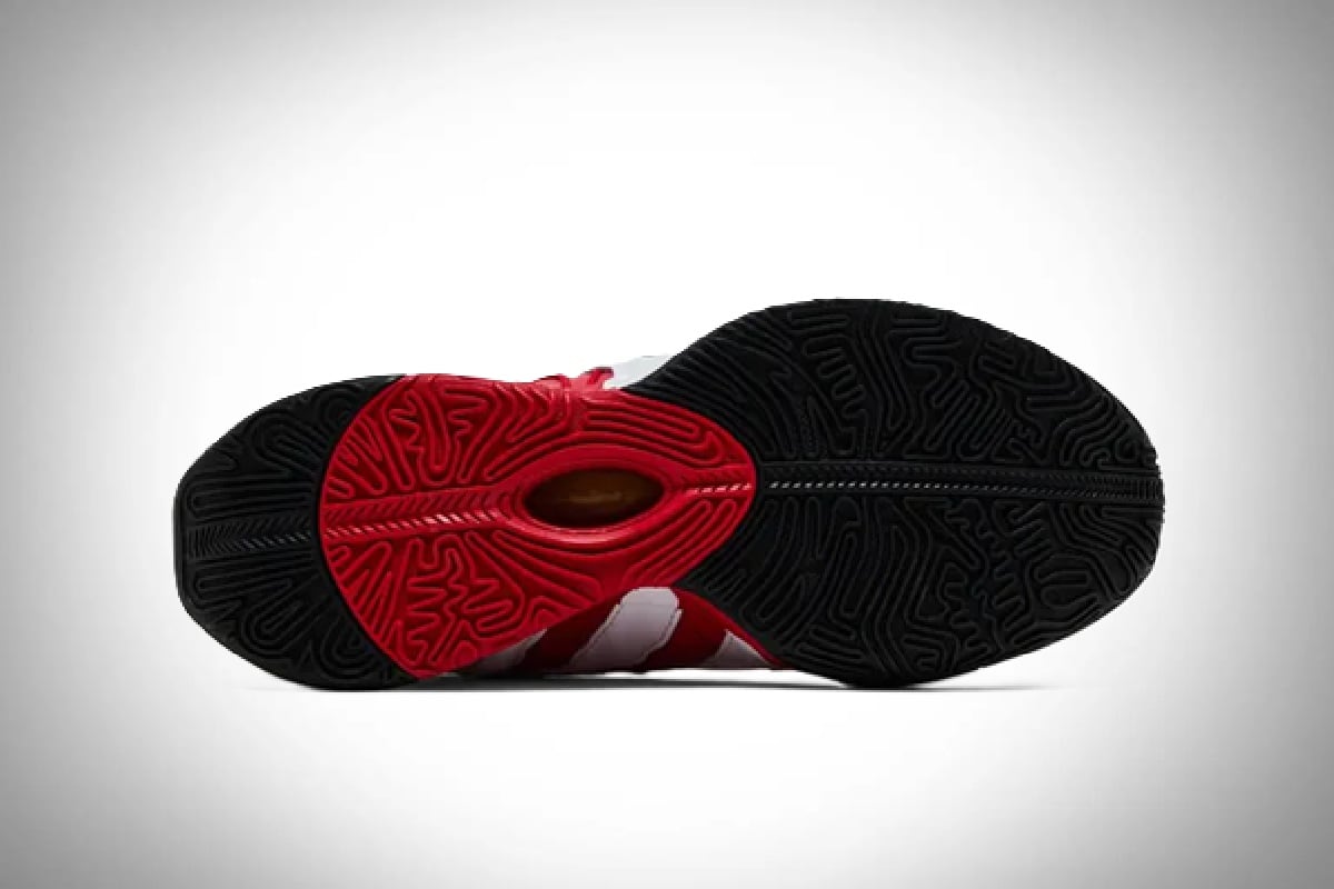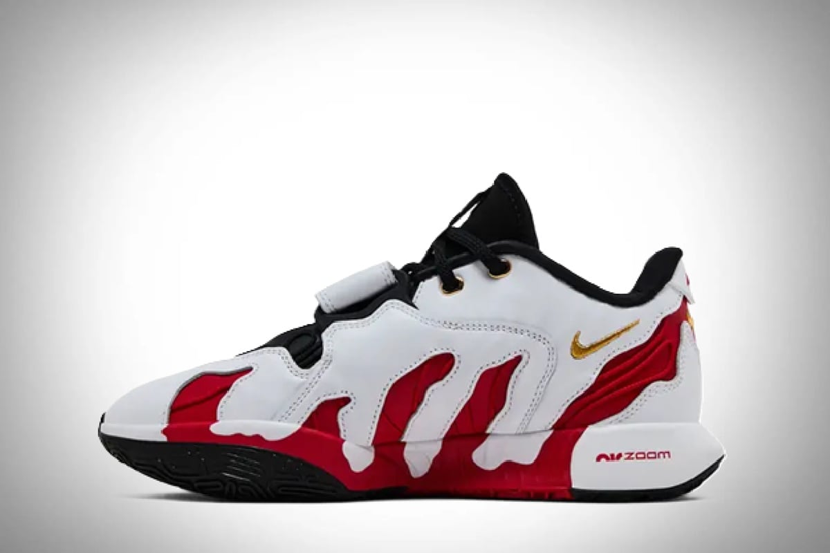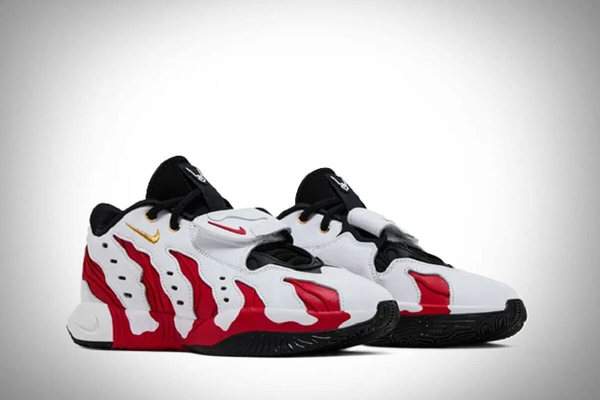 Las líneas rojas sobre el cuero pintado de blanco, parece rasgadas de las garras de un T-Rex, pero la realidad es que son la representación del fuego interno del basquetbolista norteamericano.