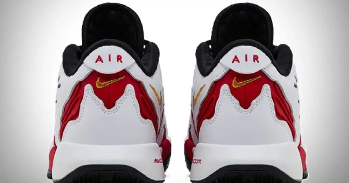 Las líneas rojas sobre el cuero pintado de blanco, parece rasgadas de las garras de un T-Rex, pero la realidad es que son la representación del fuego interno del basquetbolista norteamericano.