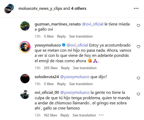 Es en esta publicación donde Ovi vuelve a realizar expresiones, esta vez en los comentarios, y pide disculpas a Molusco, aunque acompaña el texto con un emoji de risas.