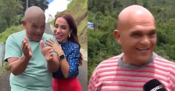 En el reportaje, el hombre de 67 años le pidió ayuda a la reportera entre risas, mientras le expresaba lo agradecido que estaba de verla nuevamente.