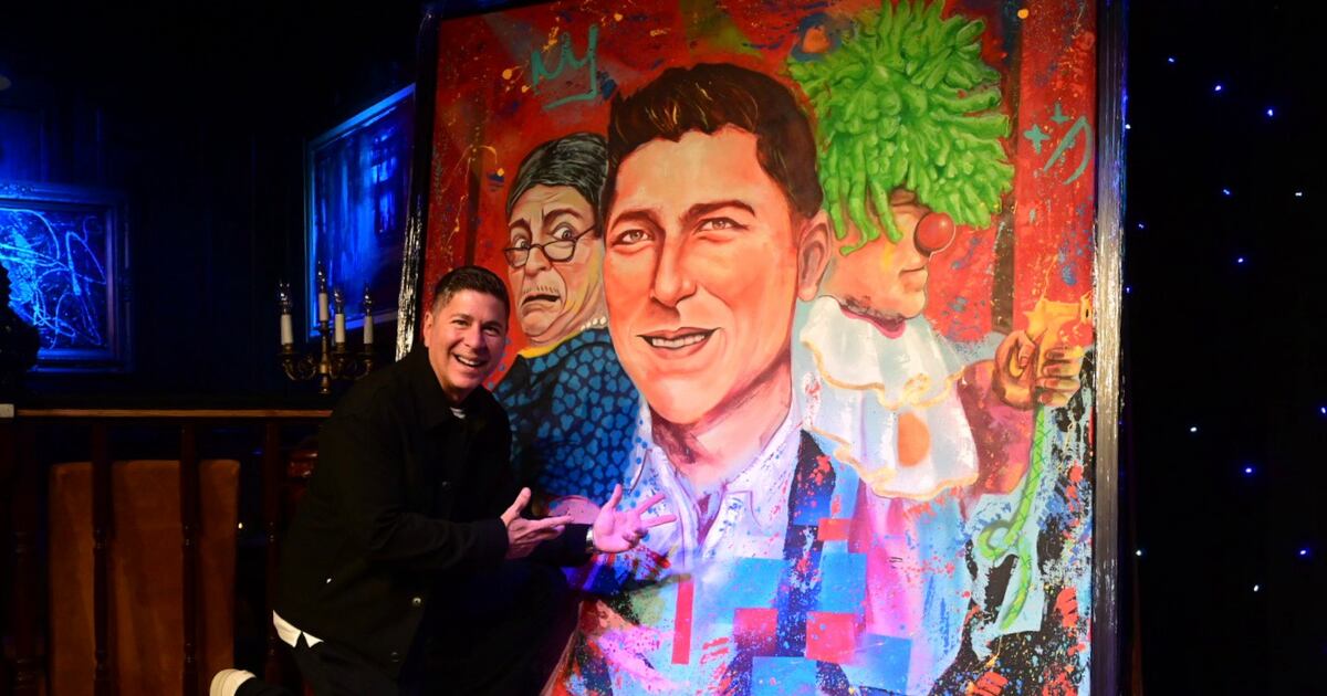 El comediante Raymond Arrieta fue homenajeado con una pintura en su honor, que destaca su larga trayectoria junto a sus personajes Plinia Palerm y Trompetilla.