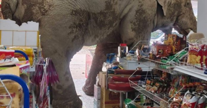 Un curioso y hambriento elefante salvaje causó revuelo esta semana en la provincia tailandesa de Nakhon Ratchasima, cuando decidió entrar a una tienda de comestibles en busca de algo para picar.