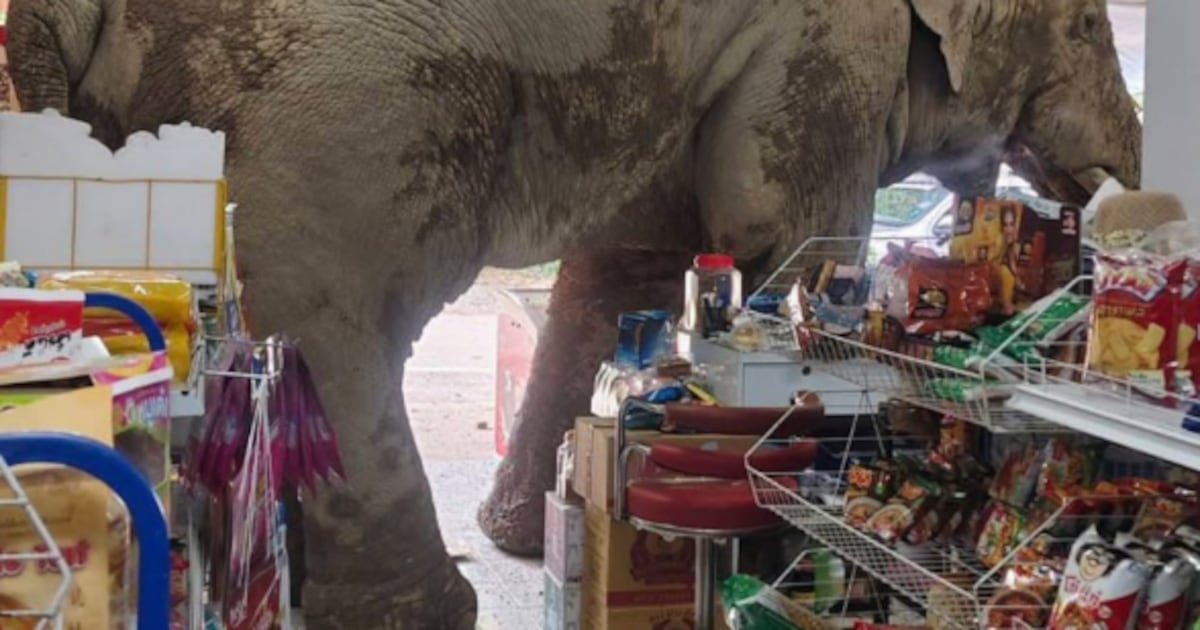 El protagonista del incidente es Plai Biang Lek, un elefante macho de unos 30 años, bien conocido por los lugareños y trabajadores del Parque Nacional Khao Yai, cercano al lugar del suceso. El lunes, el animal se detuvo frente a un pequeño establecimiento ubicado junto a la carretera, inspeccionó el lugar por unos segundos y, sin más, cruzó la entrada como un cliente habitual.