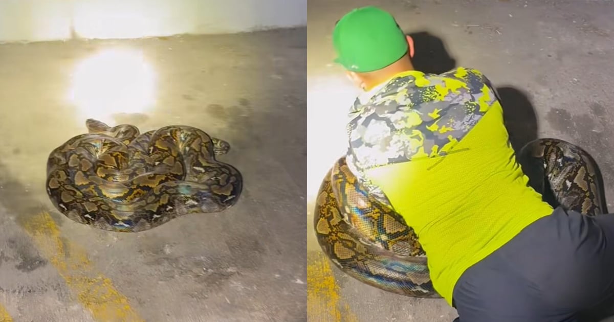 Se trata de una pitón reticulada de 14 pies que se encontraba en el estacionamiento del Hospital Auxilio Mutuo San Pablo.