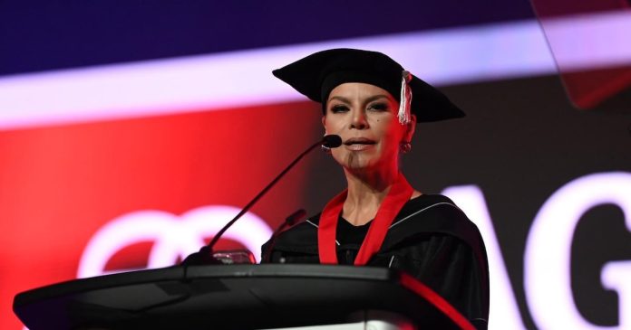 La cantante puertorriqueña Olga Tañón fue reconocida con la Medalla Presidencial de Ana G. Méndez University (AGMU), durante la ceremonia de graduación 2025 celebrada este viernes en el Orange County Convention Center, en Orlando, Florida.