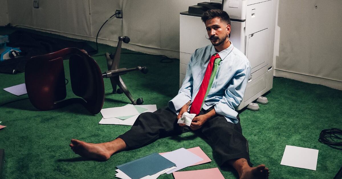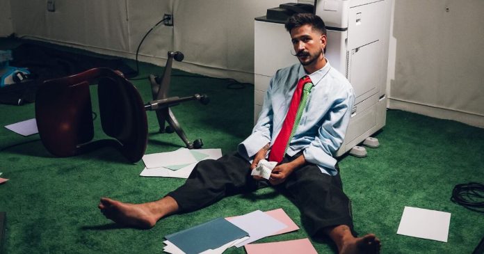 En el visual, Camilo se sumerge en una oficina oscura y sin ventanas, rodeado de caos, papeles por el suelo, post-its en las paredes y preguntas existenciales sobre su relación llenando tanto el aire como la pantalla de su computadora.