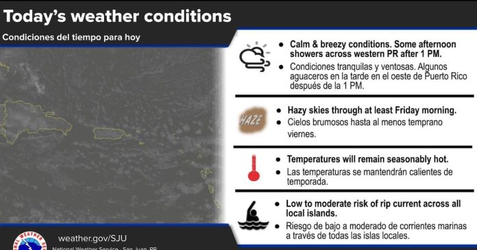 [26 de junio]- Prevaleceran condiciones tranquilas con cielo brumoso, temperaturas calientes y condiciones ventosas a través de las islas.#prwx #usviwx pic.twitter.com/ed6ZA5kcnx