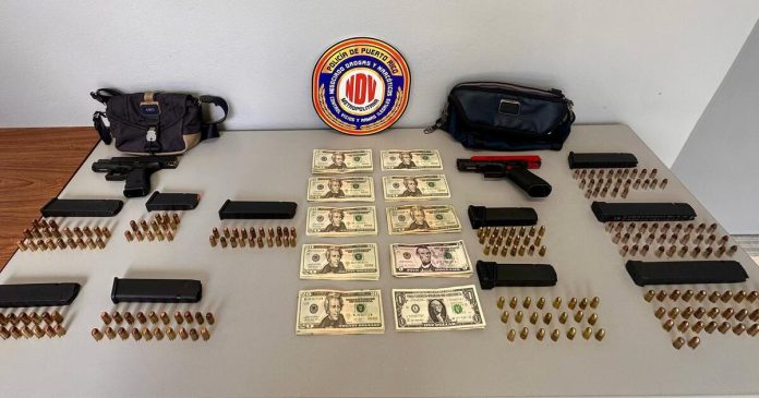 Durante la intervención, las autoridades arrestaron a un hombre identificado como Ángel Misla, de 40 años, y a una mujer identificada como Leneris Quiñones, de 25 años. En el lugar, los agentes ocuparon dos pistolas Glock, una calibre 9mm y otra .40, ambas modificadas para disparar de manera automática. También incautaron 10 cargadores, 226 municiones y $1,794.00 en efectivo.