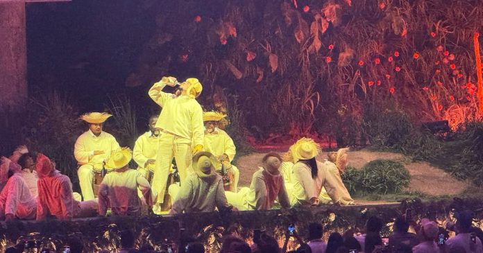 Luego de varios temas como “KETU TeCRÉ”, “EL CLúb”, “Santa”, “PIToRRO DE COCO”, y “El Apagón”, Bad Bunny se dirigió al público con “viene PR estamos en casa”.