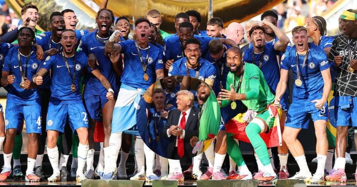 El equipo de fútbol del Chelsea se coronó campeón del Mundial de Clubes 2025 al vencer con contundencia 3-0 al París Saint-Germain, en una final que dejó muchas postales memorables. Una de las más llamativas fue la aparición del presidente de los Estados Unidos, Donald Trump, en plena celebración de los Blues.
