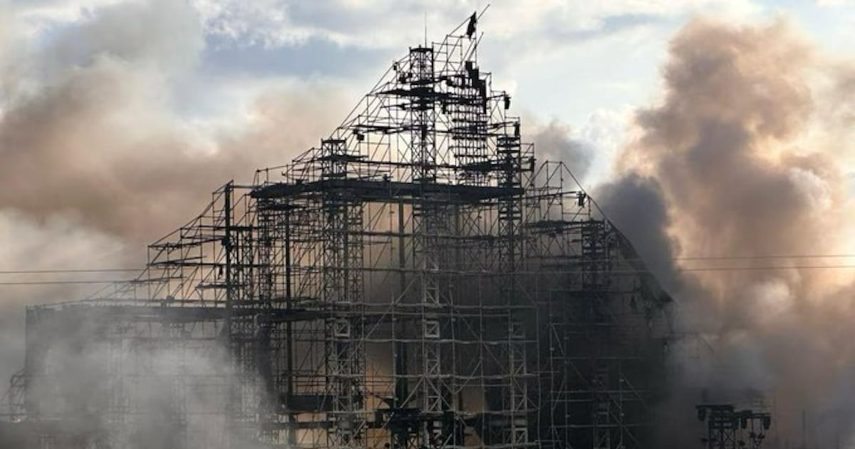 El diseño de este año evocaba una atmósfera mágica bajo la temática “The Story of Orbyz”, con un entorno visual que combinaba elementos de fantasía y naturaleza. Tras el incendio, lo único que se distingue entre el humo es una estructura de varillas retorcidas, donde antes se alzaba una imponente escenografía onírica.