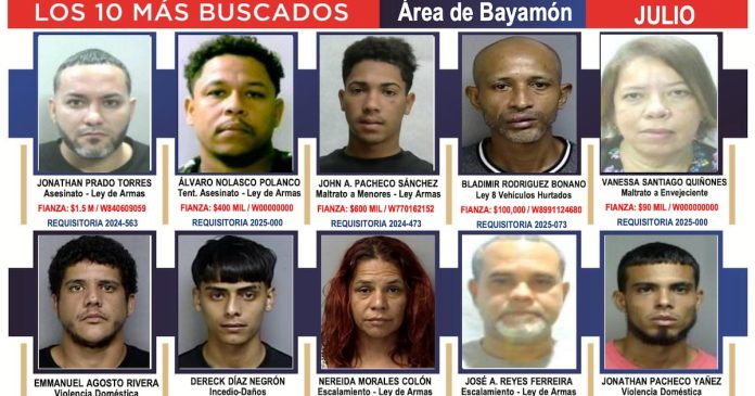 Entre los más buscados se encuentra Jonathan Prado Torres, con una orden por asesinato y violaciones a la Ley de Armas. La fianza impuesta asciende a 1.5 millones de dólares.