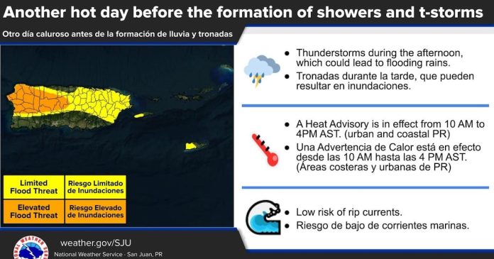 El Servicio Nacional de Meteorología (NWS, por sus siglas en inglés) emitió una advertencia de calor que abarca este sábado, de 10:00 de la mañana a 4:00 de la tarde, para las zonas urbanas costeras de la isla.