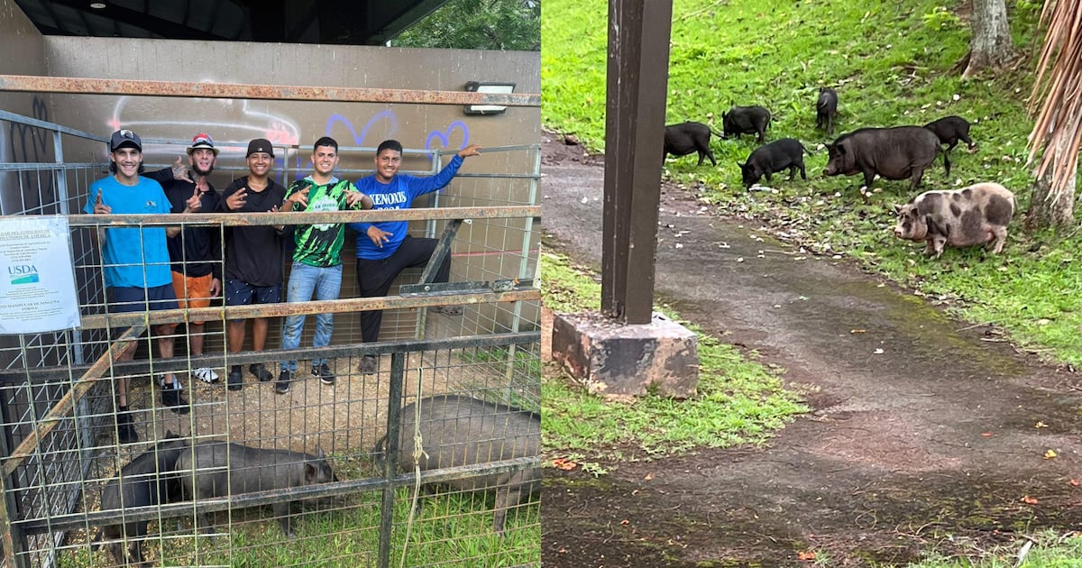 “Bueno llegamos a Trujillo Alto a coger los puercos. Eran siete, pero pudimos capturar tres”, explicó Gongo en la misma red social.