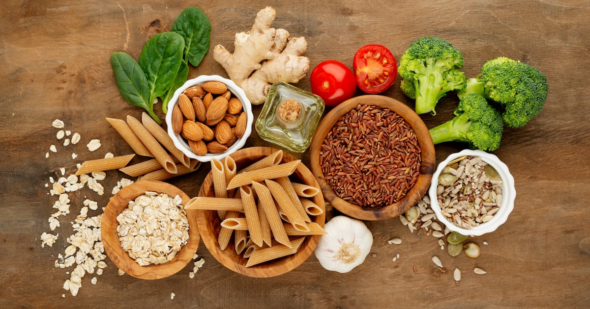 • Cereales: Avena, arroz y trigo integral (como pan integral, arroz integral,