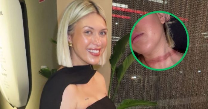 Asimismo, compartió las fotos de las marcas que le dejó el accidente, en las que parece tener una gran quemadura alrededor del cuello.