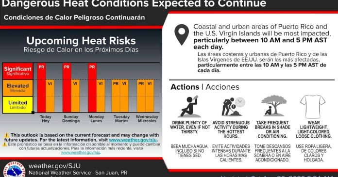 La agencia mantiene en efecto un aviso de calor extremo para las zonas urbanas y costeras de Puerto Rico, así como Vieques, Culebra y las Islas Vírgenes.