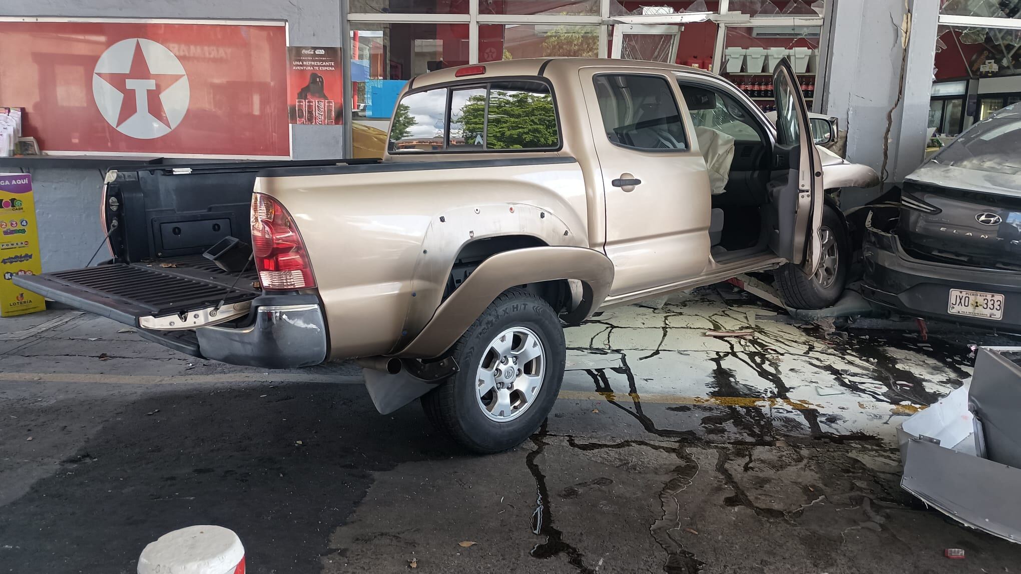 Los hechos ocurrieron a eso de las 9:45 de la mañana del martes, cuando el conductor de la Toyota Tacoma, se estrelló contra el garaje de gasolina impactando varias bombas y al menos dos vehículos. Los hechos fueron evidenciados a través de las cámaras de seguridad del local.