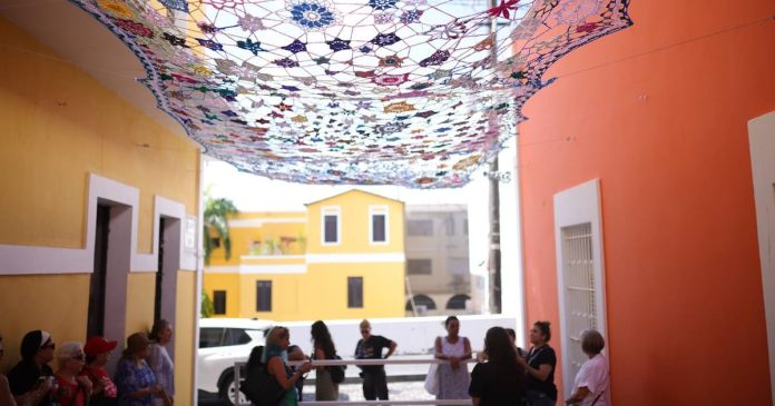 “Intervenir espacios con arte es una forma de provocar reacciones, conectar y generar experiencias únicas. Con iniciativas como esta logramos captar la atención de visitantes y residentes, ofreciendo un lienzo para que nuestros artistas desplieguen su talento. Este tejido es símbolo de comunidad, de los lazos que nos unen y nos invita a mirar hacia arriba para descubrir que el arte vive en todo. El que personas de la comunidad ciega, de distintas edades y géneros sean parte de esta creación, le añade una dimensión extraordinaria al proyecto”, indicó Maritere González, primera dama de San Juan.