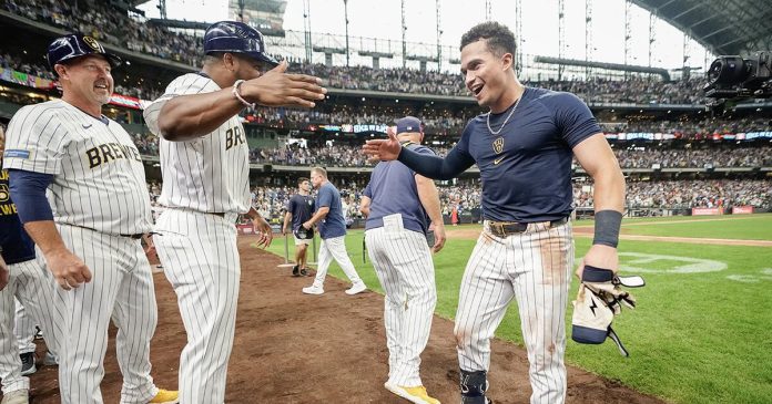 La celebración tuvo un giro memorable: esa misma noche, los Brewers protagonizaron una remontada espectacular ante los St. Louis Cardinals. El equipo superó una desventaja de cinco carreras para imponerse 9-8 en entradas extras. Caleb Durbin empató con un doble en la novena y Andruw Monasterio definió en el décimo episodio con un imparable que desató la fiesta en el terreno y en el camerino.