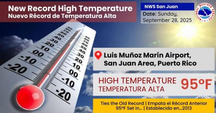 El Servicio Nacional de Meteorología (SNM) anunció este domingo que hay un nuevo récord de temperatura para San Juan.