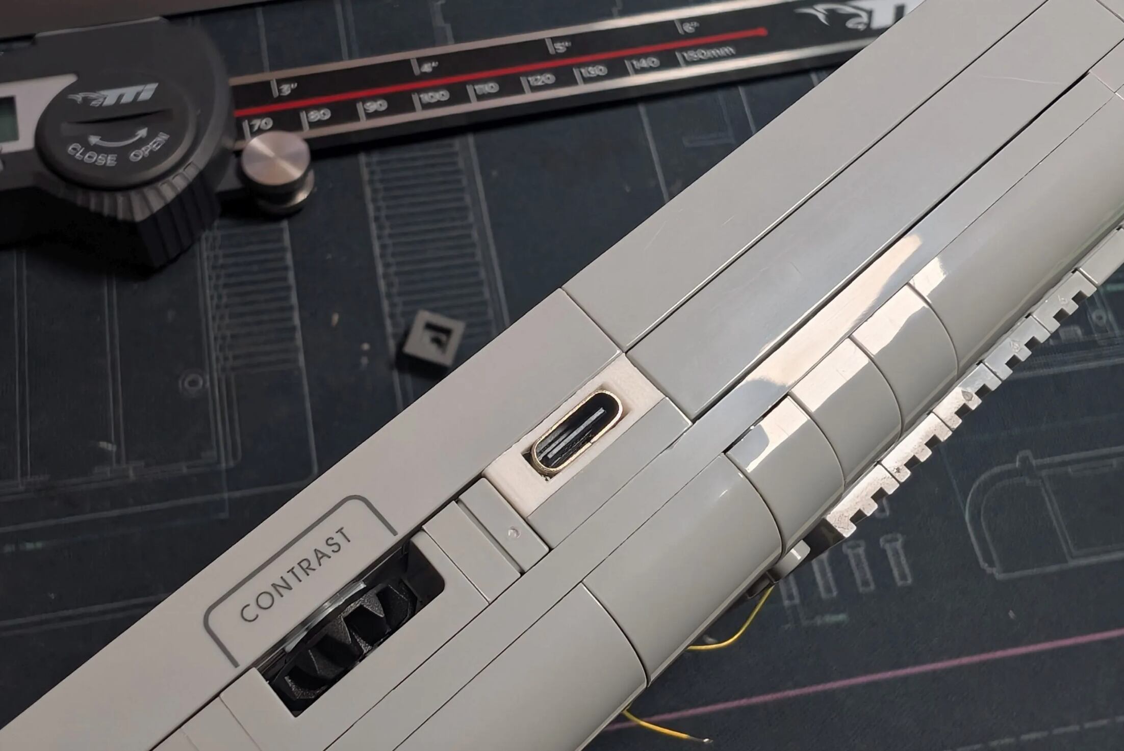 • Energía: La consola es alimentada mediante un puerto de carga USB-C, un componente moderno integrado hábilmente en el diseño de los ladrillos.