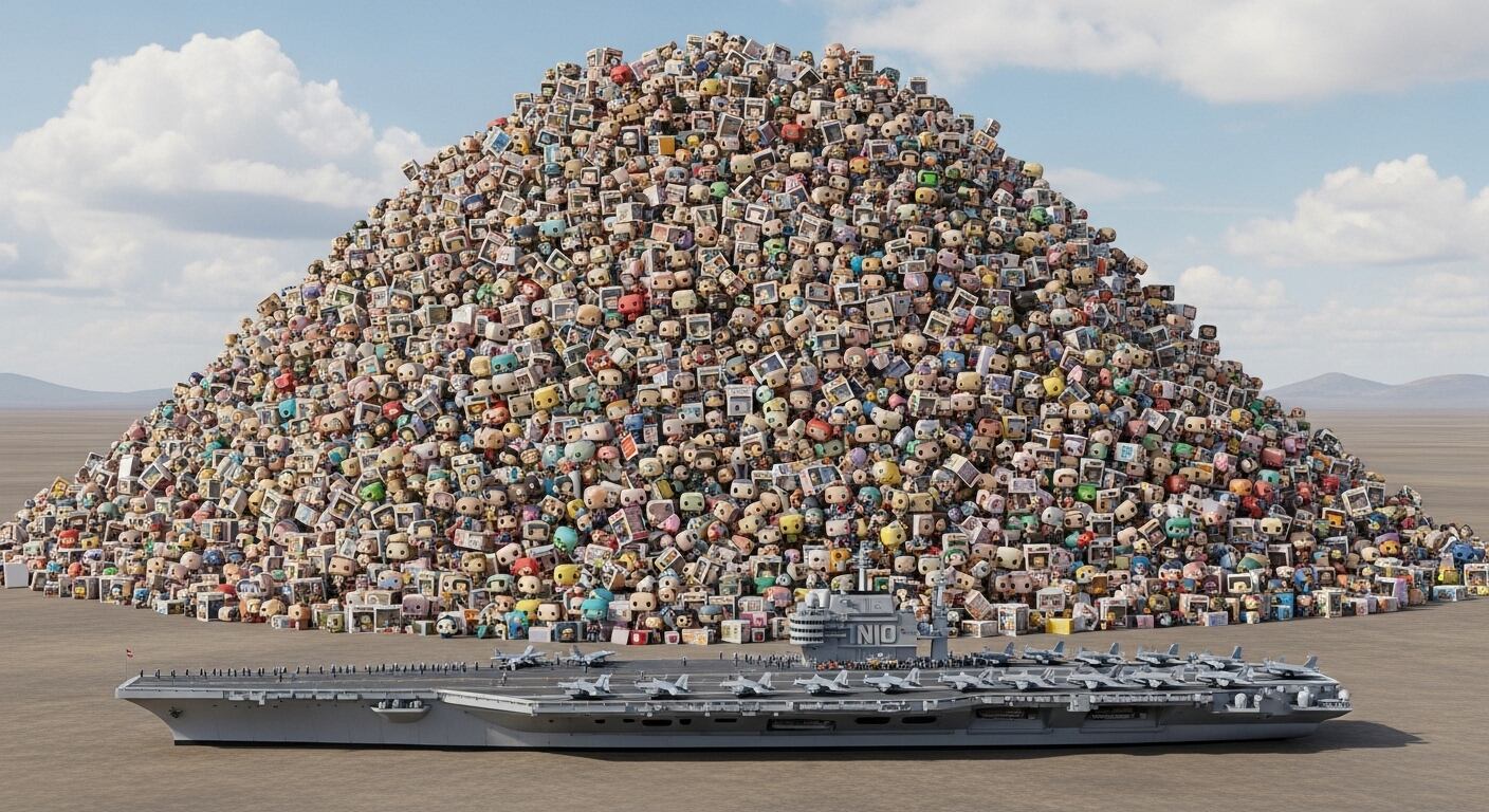 - Peso Equivalente: Considerando que cada figura pesa en promedio 140 gramos, el conjunto total de mil millones de figuras suma 156,250 toneladas. Este peso supera el doble de un portaaviones de 300 metros de longitud, con toda su tripulación, aeronaves y suministros incluidos.