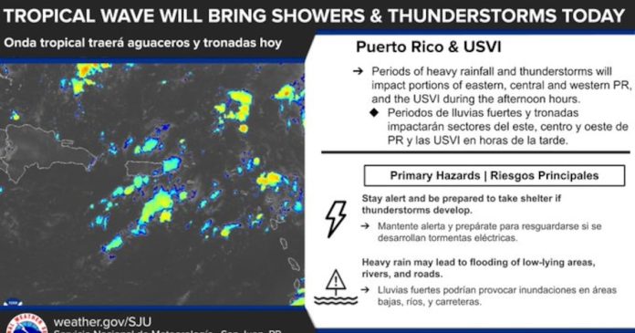 Hoy se esperan lluvias y tronadas debido a una onda tropical que se desplaza por las islas. Esté atento a las condiciones meteorológicas por el potencial de rayos frecuentes o posibles inundaciones en su zona más tarde hoy.#prwx #usviwx https://t.co/dm5ShmHx5V