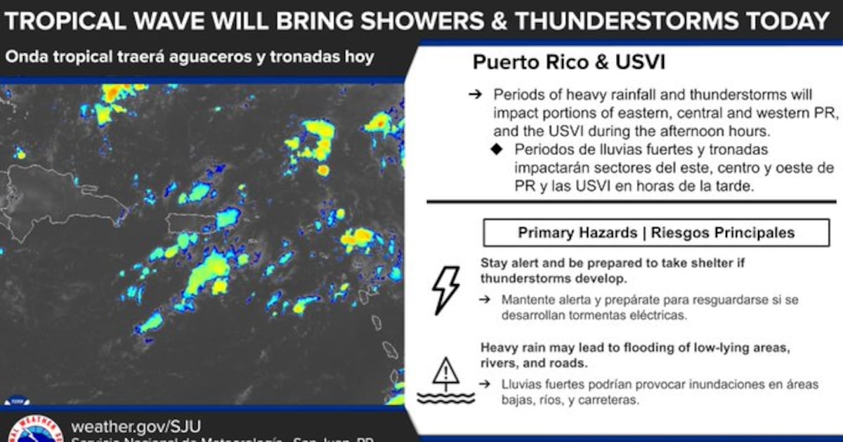 Las autoridades del tiempo informaron que una onda tropical continúa afectando a Puerto Rico. El Servicio Nacional de Meteorología advirtió sobre un riesgo limitado a moderado de inundaciones, especialmente en los municipios del centro, noroeste y noreste, incluyendo el área metropolitana de San Juan.