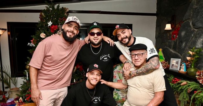 Desde la sala de la casa en la Hacienda Azucena en Río Grande, la agrupación se acomodó cerca del árbol de Navidad, acompañados por el abuelo de la familia, Efraín Rivera Rivera, recreando la estampa de la familia puertorriqueña.