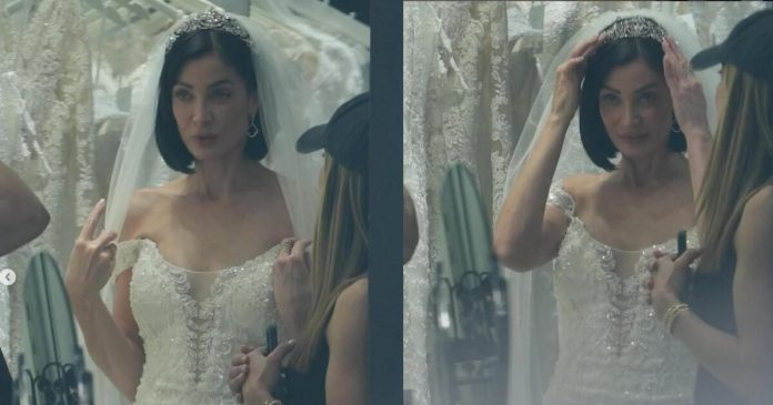 En imágenes publicadas por la revista People en Español, se aprecia a la Miss Universo 1993 midiéndose un vestido blanco, lo que desató una ola de comentarios y especulaciones entre sus seguidores.