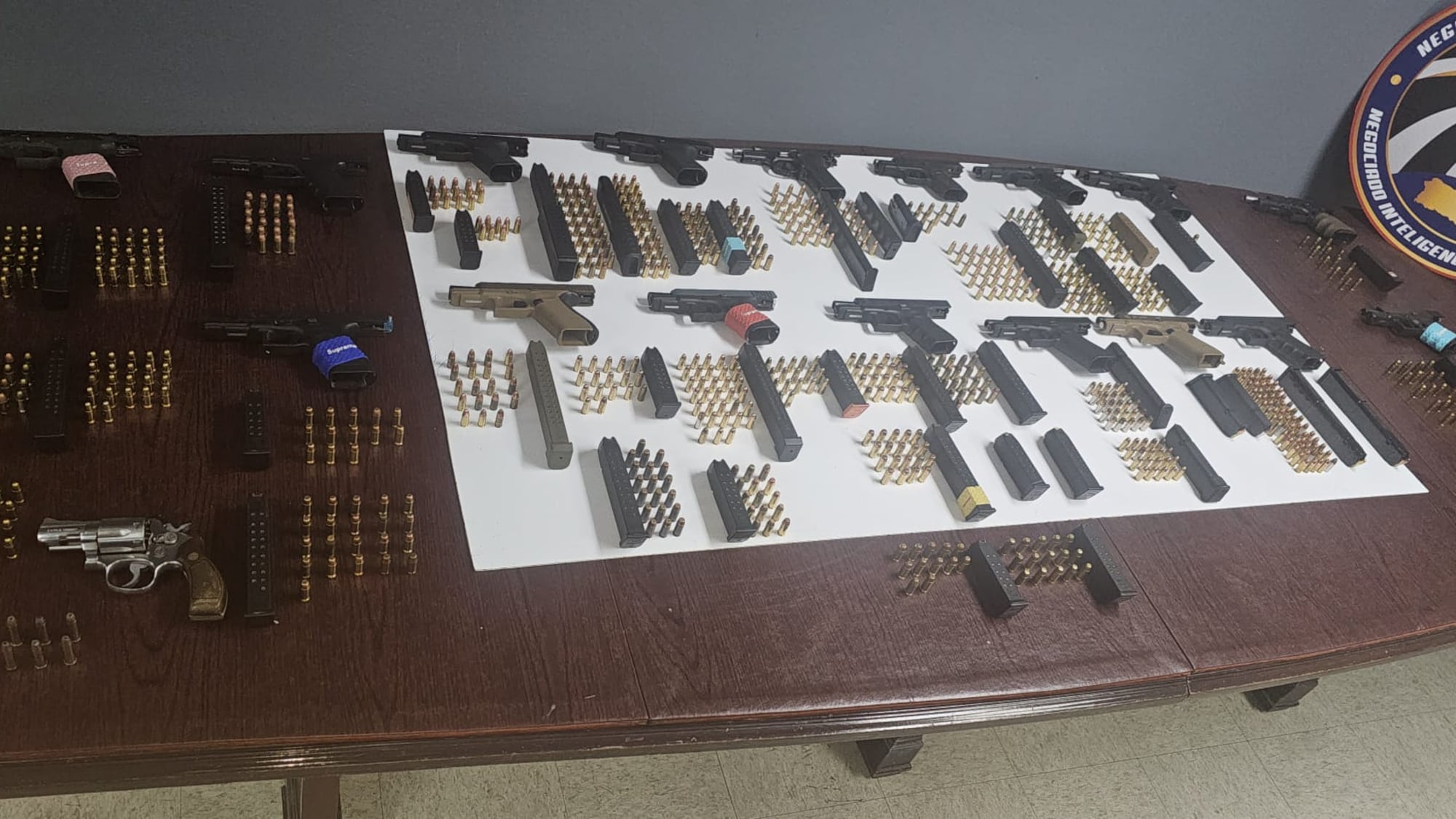 En este establecimiento se ocupó una pistola Glock 22 calibre .40, equipada con aditamento para disparo automático y adaptador para silenciador, junto a un abastecedor y 21 municiones calibre .40.