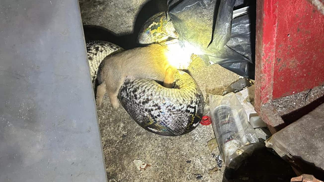El cazador de serpientes, José Luis Morales Berríos, mejor conocido como “Gongo Fishing”, publicó este fin de semana en sus redes sociales imágenes que documentan cómo una pitón reticulada mató y se comió a tres cachorros en Toa Alta.