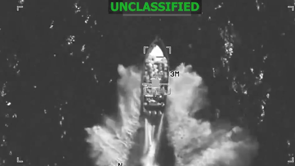 El ataque inicial sobre la embarcación, que se creía transportaba cocaína, mató a nueve personas de inmediato, partió el barco a la mitad, lo volcó y provocó una columna de humo visible desde lejos, según fuentes que revisaron el video de vigilancia usado en los informes.