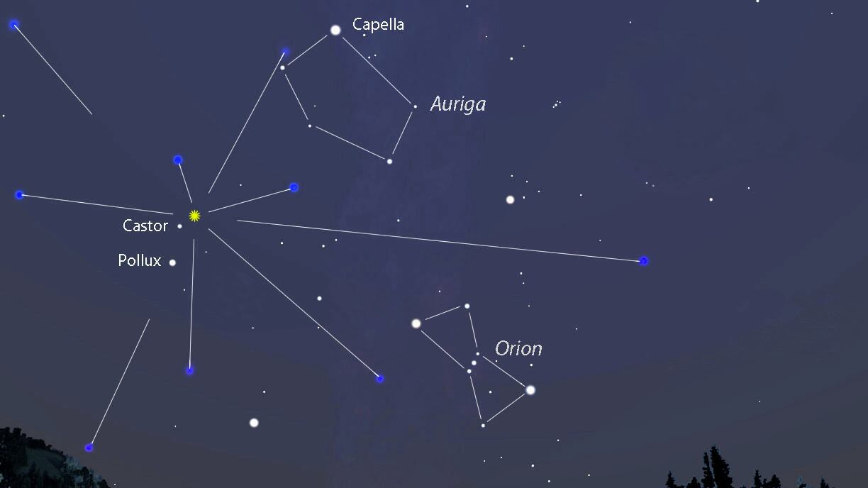 Las Gemínidas se conocen así por su radiante, que es el lugar en el cielo de donde parten todas los meteoros, el cual se sitúa en la constelación de Géminis. En años anteriores, el estimado ha llegado a ser de alrededor de 100 a 120 meteoros por hora en su punto máximo.