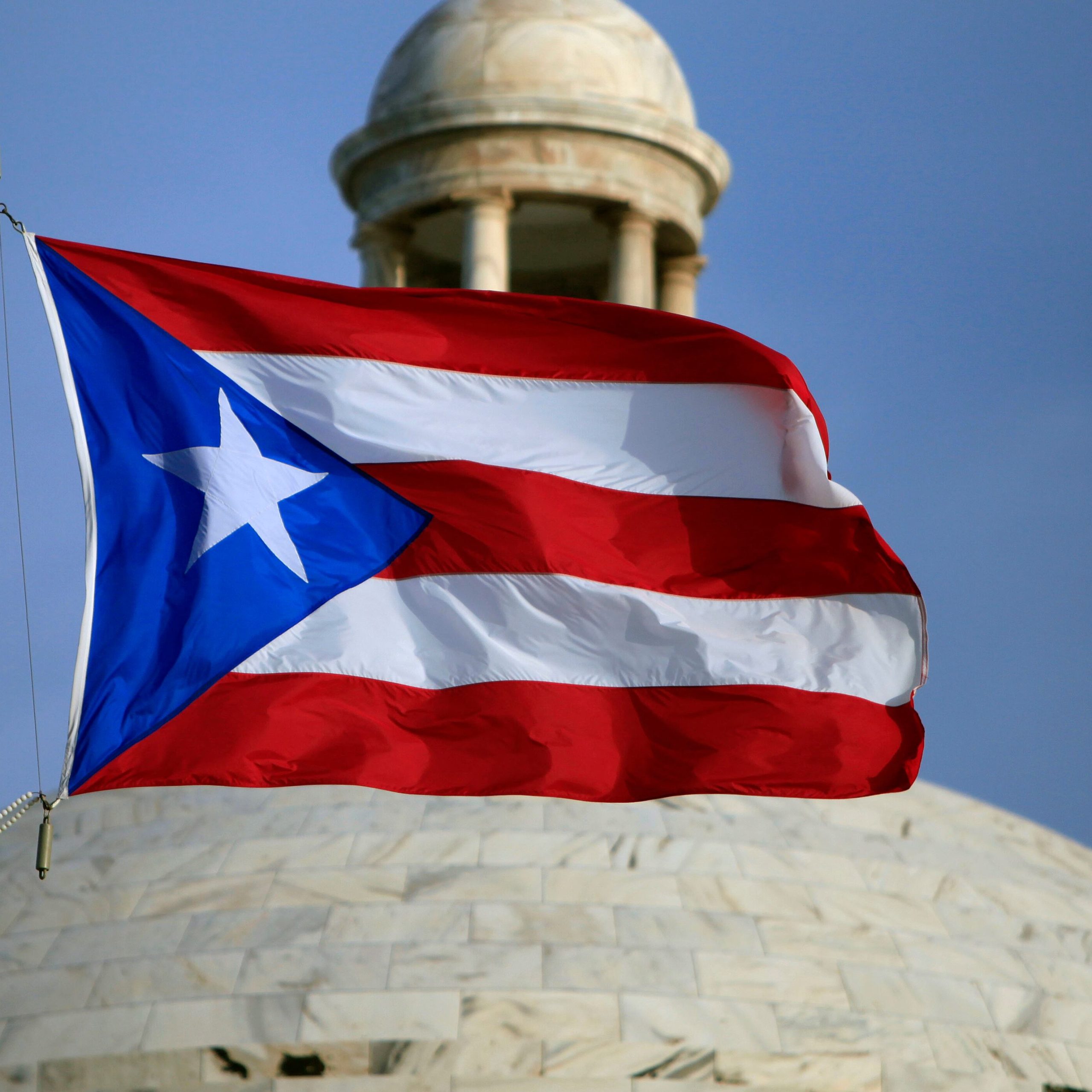 ARCHIVO – La bandera puertorriqueña ondea delante del Capitolio el 29 de julio de 2015, en San Juan, Puerto Rico. (AP Foto/Ricardo Arduengo) (Ricardo Arduengo/AP)