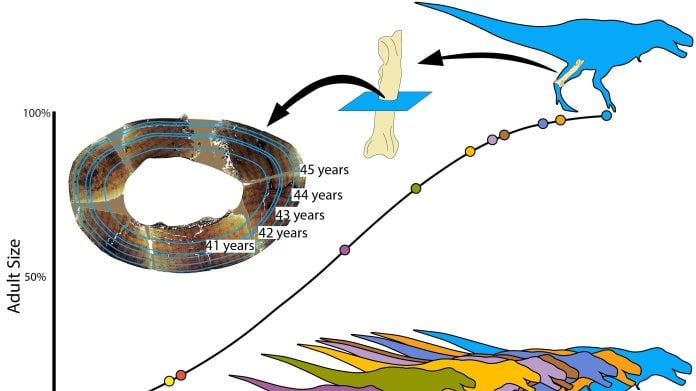 Durante décadas, los paleontólogos han tratado de reconstruir la vida del Tyrannosaurus rex mediante el estudio de los anillos de crecimiento en sus huesos, similares a los de los árboles, y hasta ahora las tesis más generalizadas apuntaban que estos gigantes carnívoros alcanzaban su tamaño adulto alrededor de los 25 años.