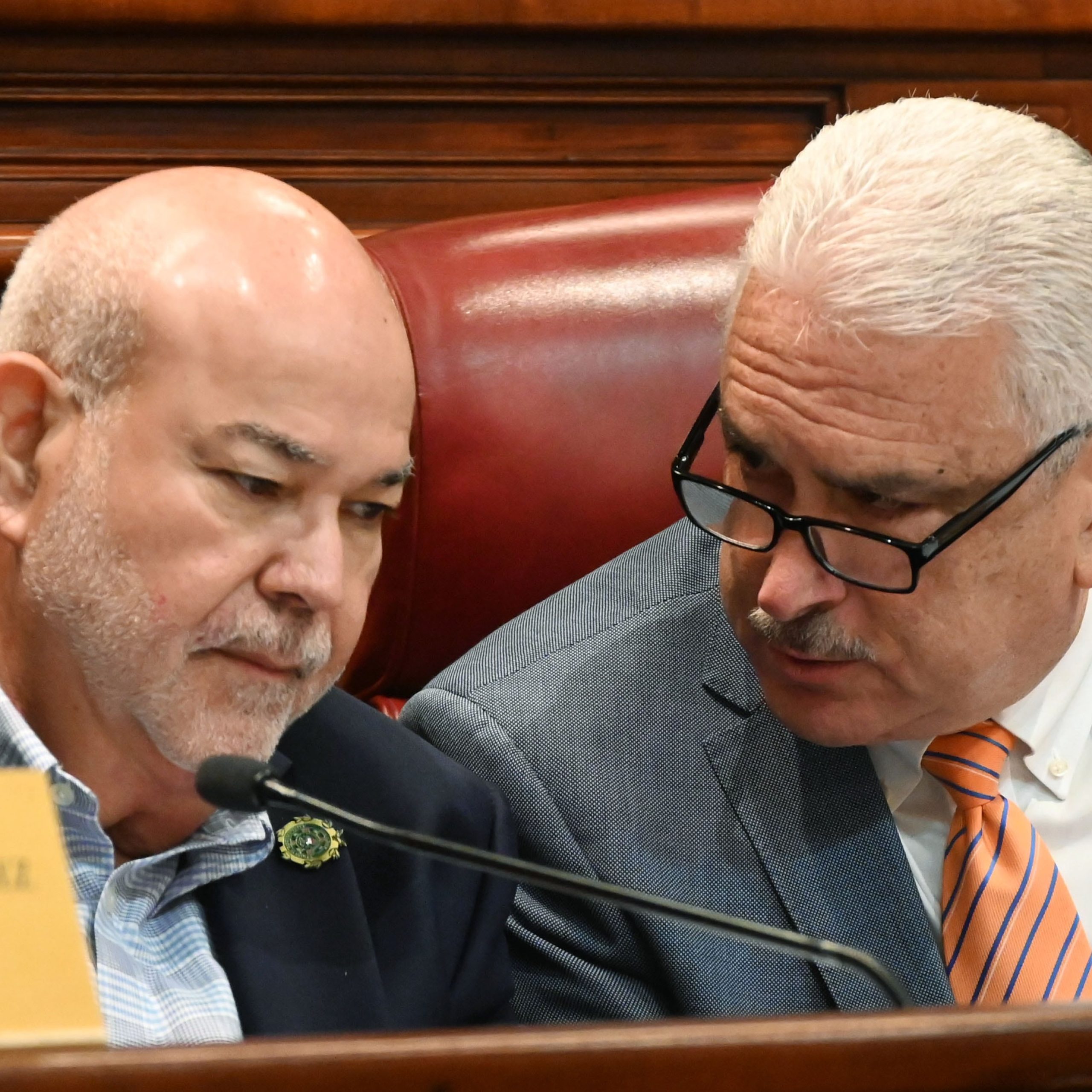Vistas conjuntas de la Camara de Representantes y el Senado, para reformar la Ley Electoral. El Presidente del Senado, Thomas Rivera Schatz y el Presidente de la Camara de Representantes Johnny Méndez. Vistas conjuntas de la Camara de Representantes y el Senado, para reformar la Ley Electoral. Salón Leopoldo Fernández. Capitolio , San Juan. metro PR 11 de diciembre de 2025 (Dennis A. Jones)