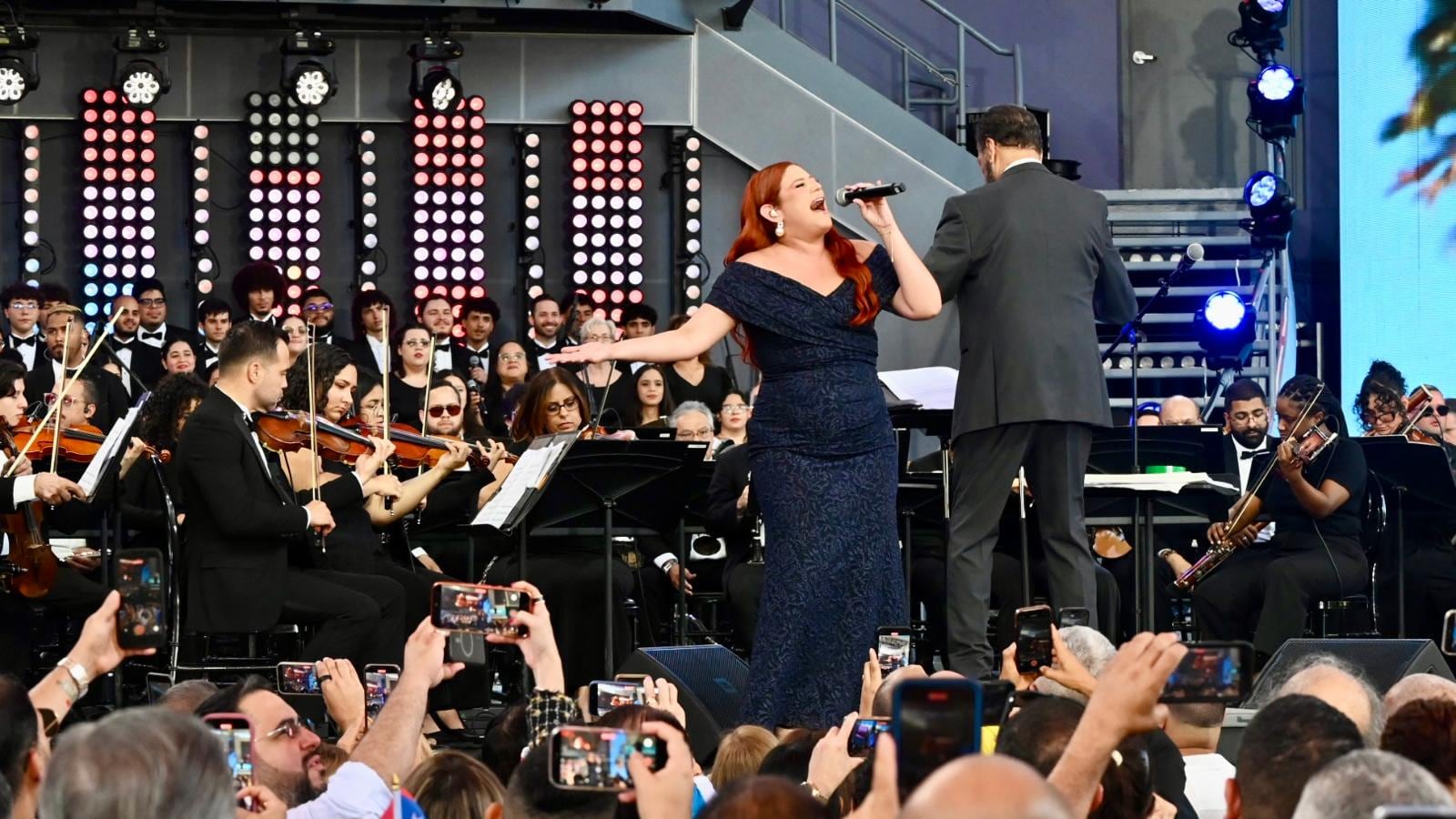 Concierto campaña de PR Concierto desde el Distrito T-Mobile en San Juan, donde el maestro Cucco Peña dirigió a la Orquesta Filarmónica de Puerto Rico y la Coralia de la Universidad de Puerto Rico como parte de la presentación simultánea de la campaña “Yo te quiero Puerto Rico” durante FITUR 2026. (Dennis A. Jones)
