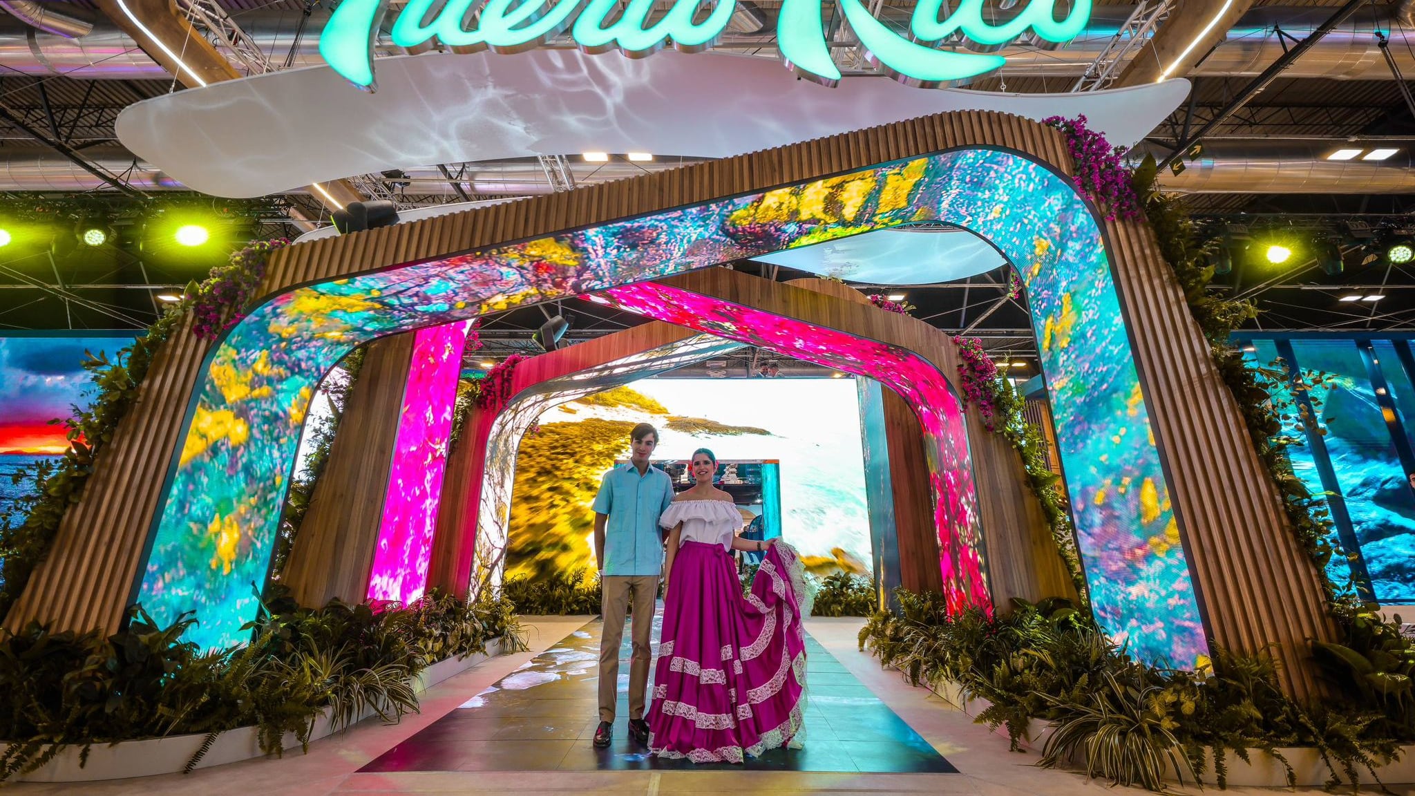 La gobernadora Jenniffer González Colón y el ministro dominicano de Turismo, David Collado, presentaron la primera fase de la campaña desde el exhibidor del vecino país donde, además, repitieron un baile al son de Elvis Crespo, como el año pasado.