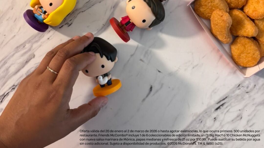 La propuesta incluye una figura coleccionable inspirada en uno de los seis personajes principales y ofrece la opción de escoger entre un Big Mac o diez piezas de Chicken McNuggets, en tamaño mediano. Como guiño directo a uno de los momentos más recordados del grupo, el combo se acompaña de la salsa Marinara de Mónica.