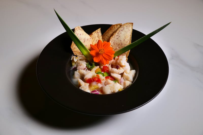 Para quienes prefieren algo más fresco antes del plato fuerte, el ceviche aparece con variaciones con piña o con mangó.