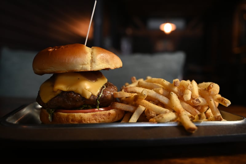 Pa’l Pueblo Whisky Bar Whisky Barbeque Burger servido con papas trufadas. (Dennis A. Jones)