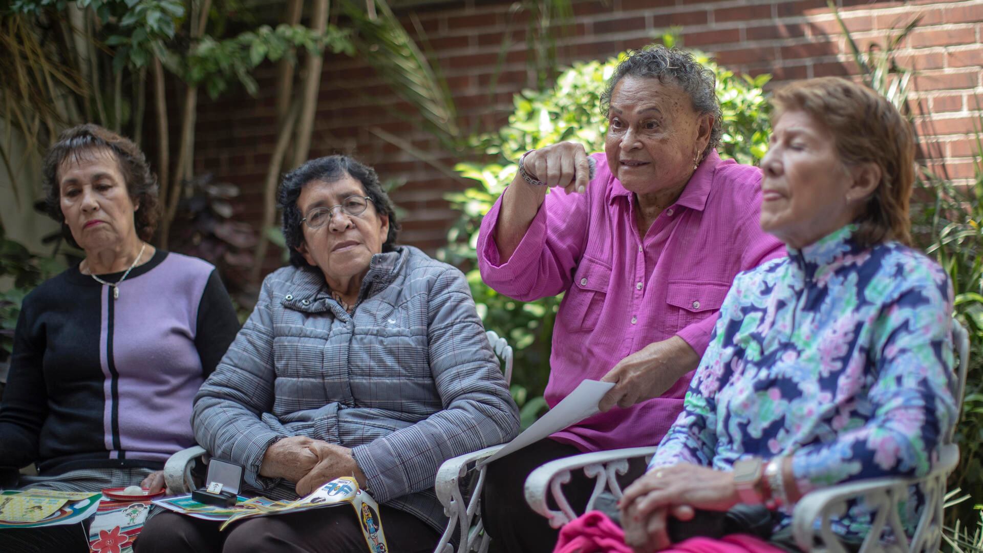 De izquierda a derecha las exjugadoras de fútbol, Alicia Vargas, Irma Chávez, Elvira Aracén y Lourdes de la Rosa, durante de una entrevista con EFE este jueves, en Ciudad de México (México). EFE/Isaac Esquivel (Isaac Esquivel)