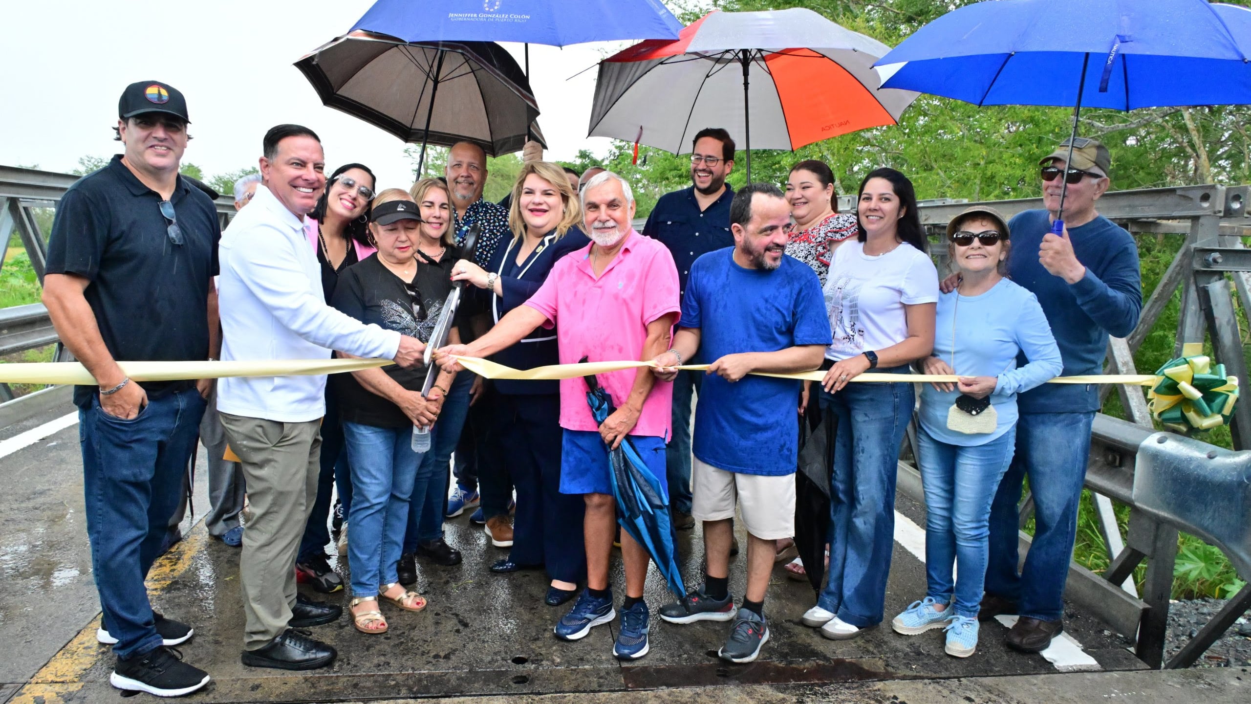 La gobernadora inauguró el puente junto a vecinos de la zona, el alcalde de Lajas Jayson Martínez, la representante del Distrito 21 (Guánica, Maricao, Lajas, Las Marías, Sabana Grande y Yauco) Omayra Martínez y el secretario de Transportación y Obras Públicas (DTOP) Edwin González.