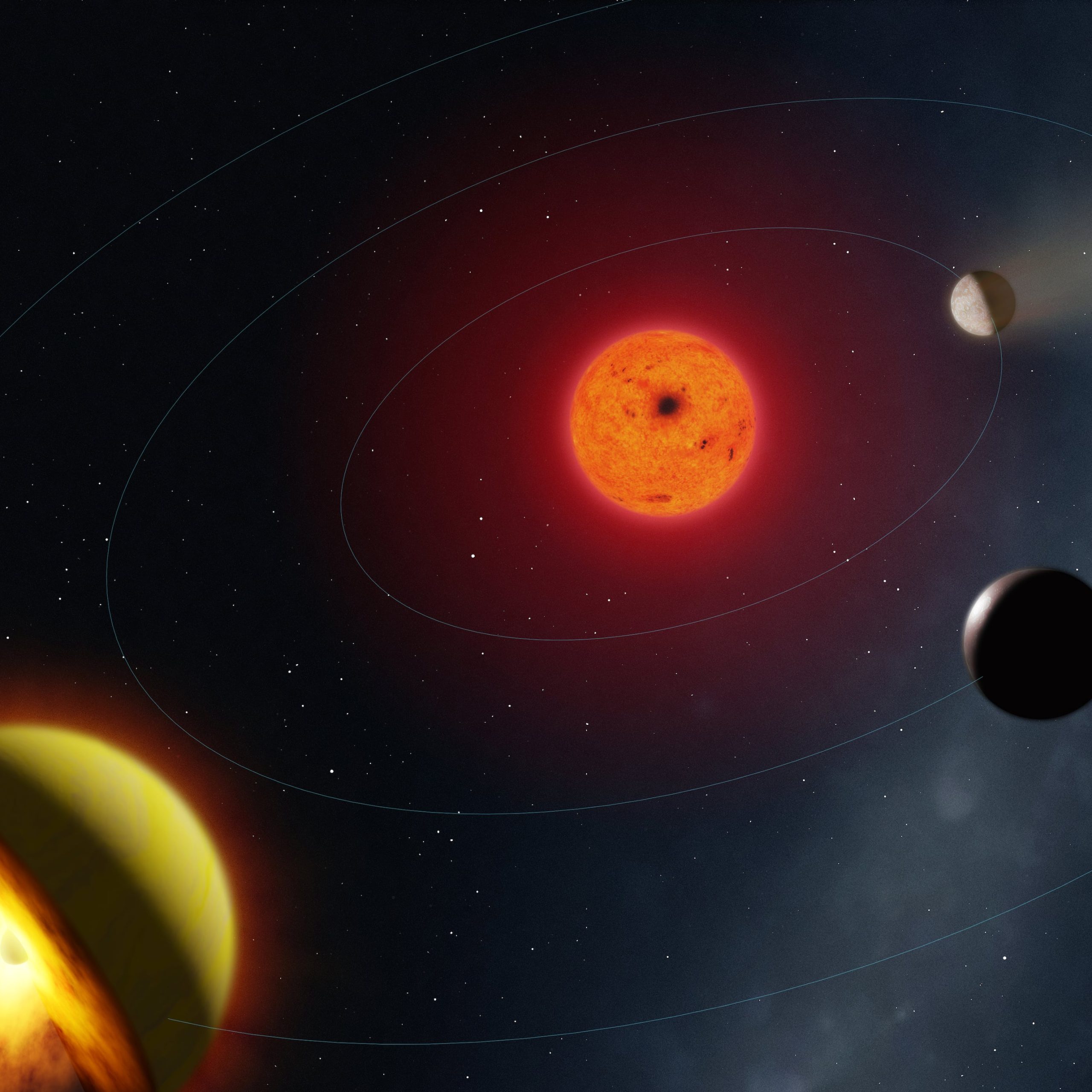 Las observaciones realizadas en 2024 con el telescopio espacial James Webb detectaron dióxido de azufre en las capas altas de la atmósfera del planeta, y los modelos indican que estos gases se generan cuando la radiación ultravioleta de su estrella desencadena reacciones químicas en la atmósfera.
