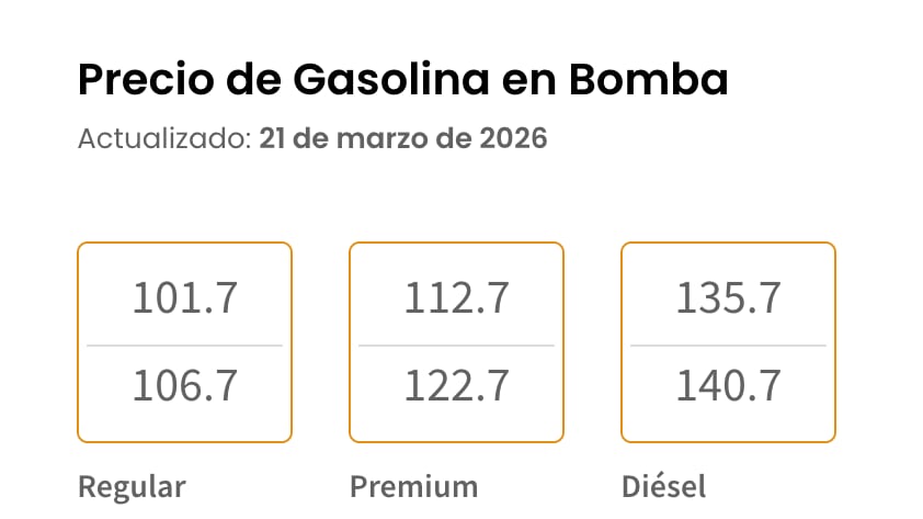- Gasolina premium: entre $1.12 y $1.22 por litro